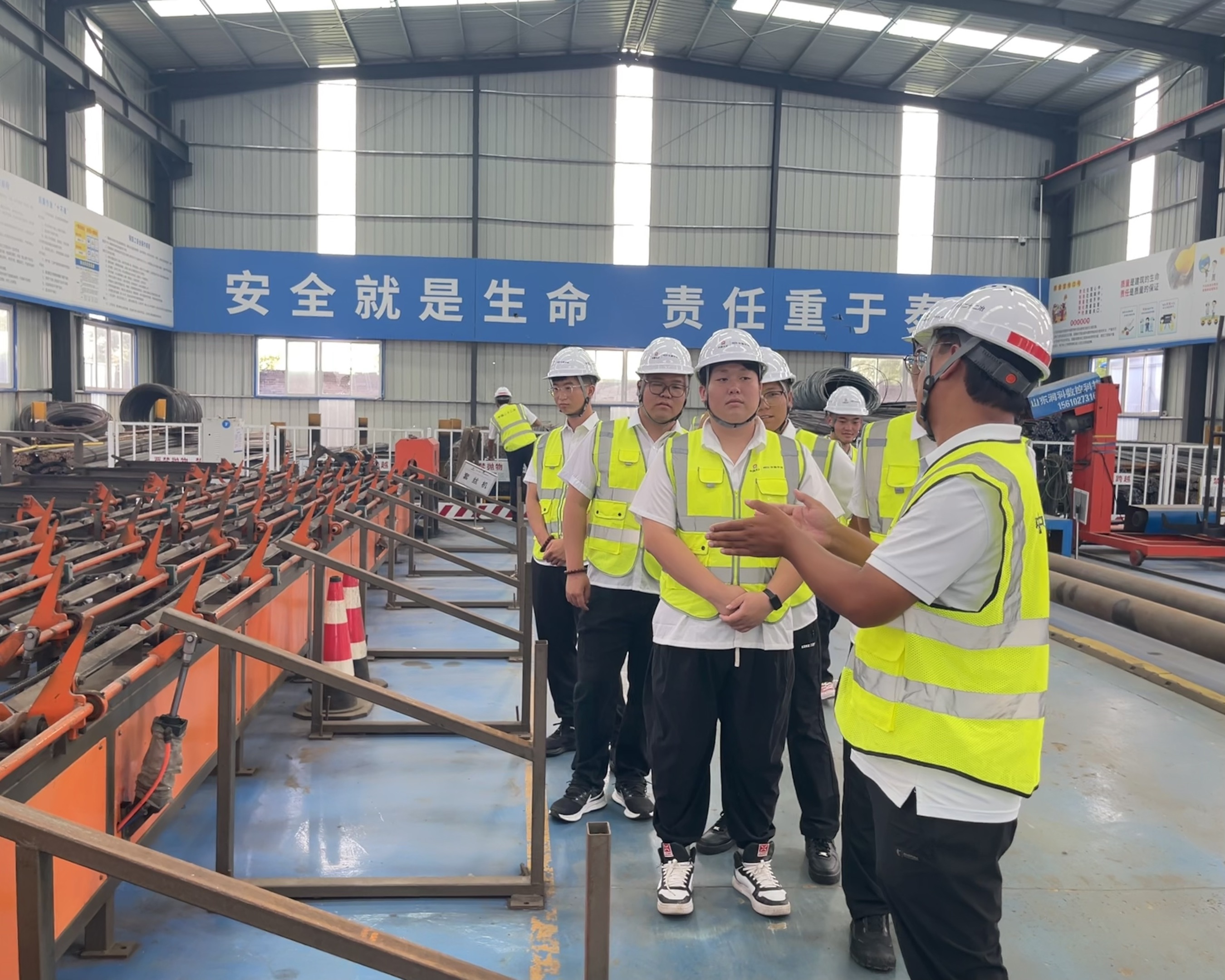 實踐觀摩環節,青年員工走進路北市政二期項目,通過近距離觀察工藝細節、對照標準流程,不僅系統地了解了各工序的技術要點與質量標準,更對標準化施工在提升工程質量、保障安全高效建設中的作用有了全新理解,為后續崗位實踐積累了寶貴經驗。實踐觀摩結束后,青年員工來到京唐智慧港項目,參觀辦公區與生活區。溫馨整潔的辦公環境、設施完善的生活區域,感受項目“黨建+文化”融合的特色氛圍。