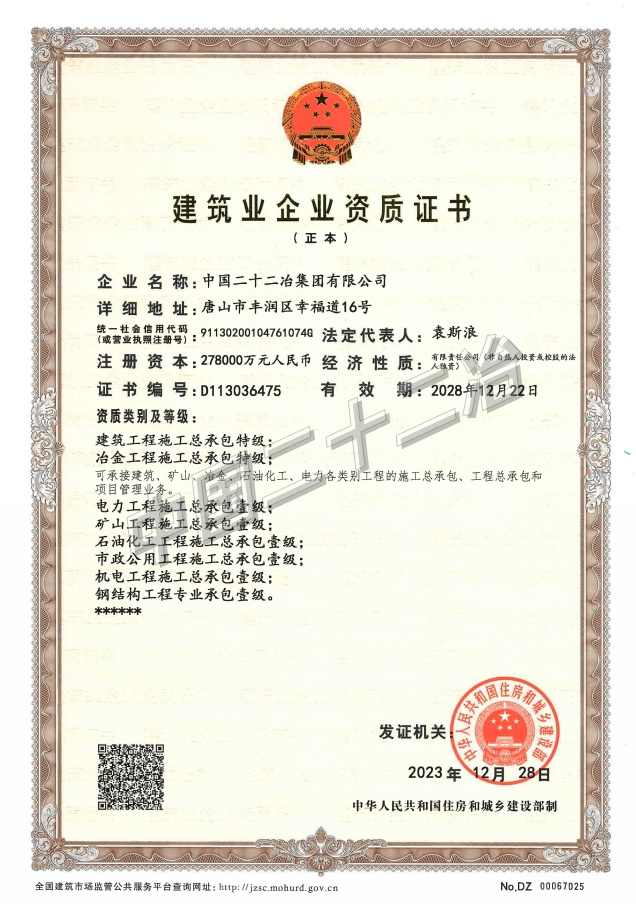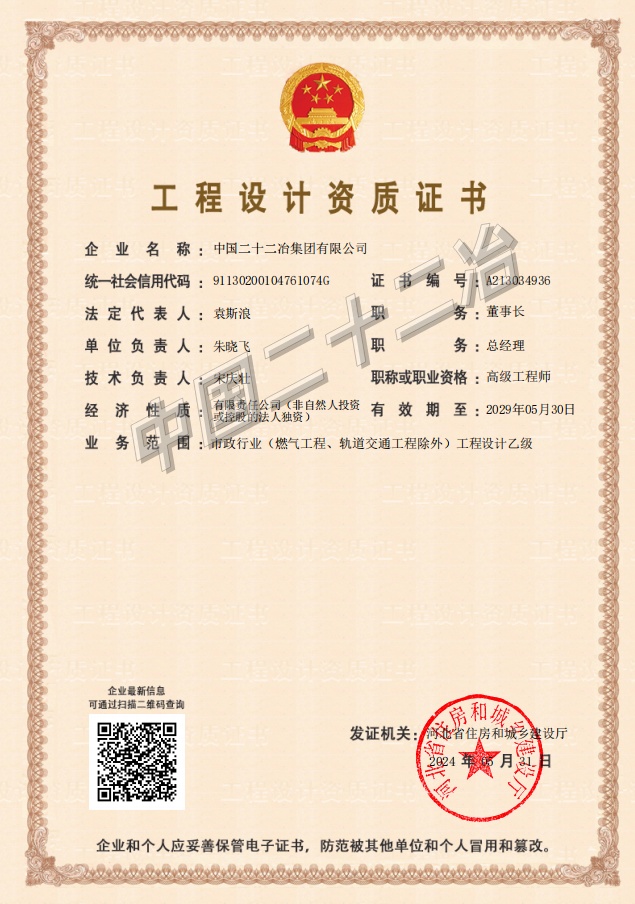 中國二十二冶集團施工、設計資質