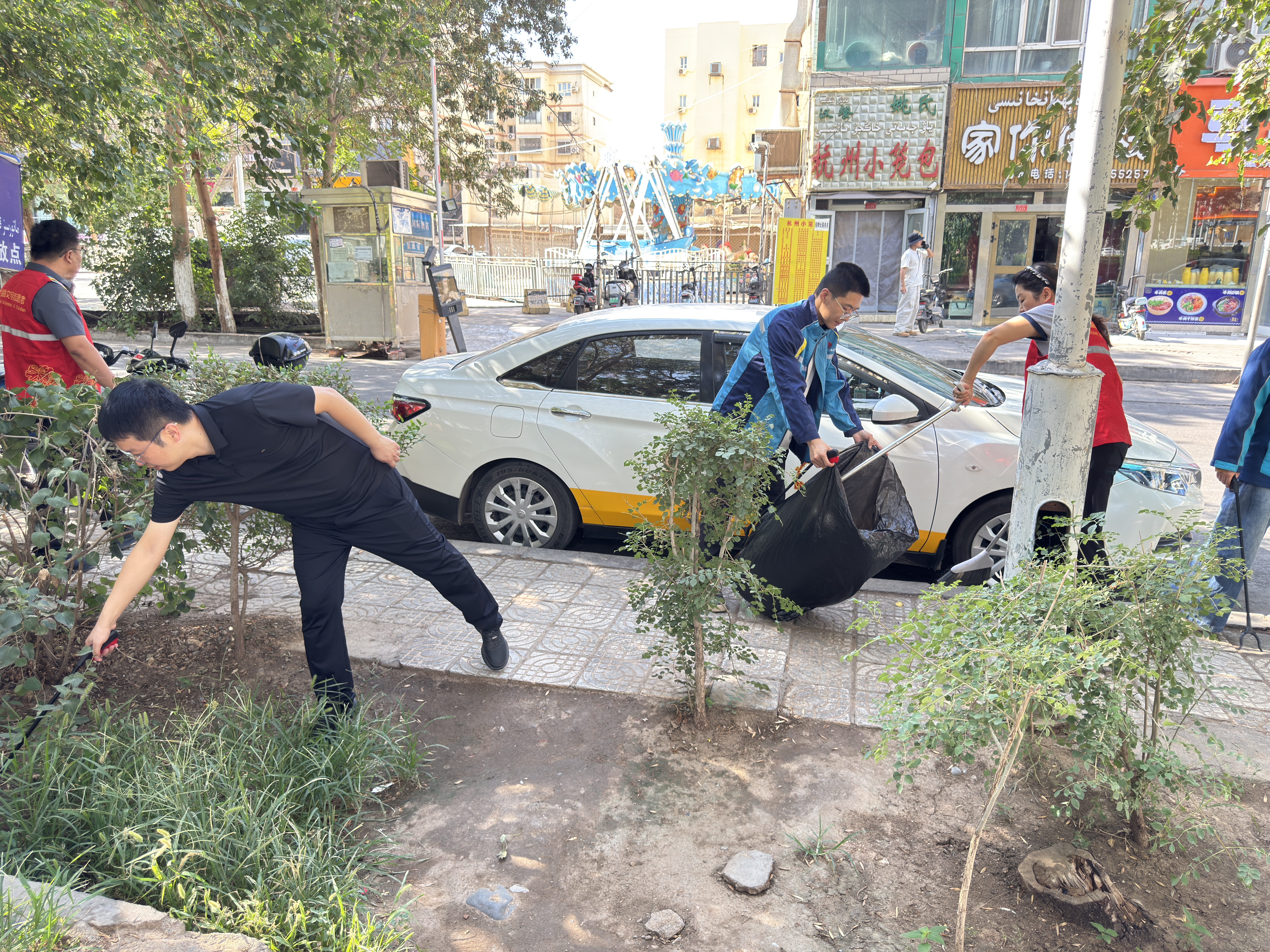 活動中,全體職工分工協(xié)作、默契配合,手持掃帚、垃圾鉗等清潔工具,對項目周邊綠化帶及主要通行道路展開了全面清掃。一部分人細致清掃地面落葉與雜物,一部分人認真擦拭宣傳欄、扶手等公共設(shè)施,還有專人負責收集和清運積存垃圾,并對平日易忽略的衛(wèi)生死角進行徹底清理。現(xiàn)場氣氛熱烈,忙碌中不失條理,高溫下更顯擔當。