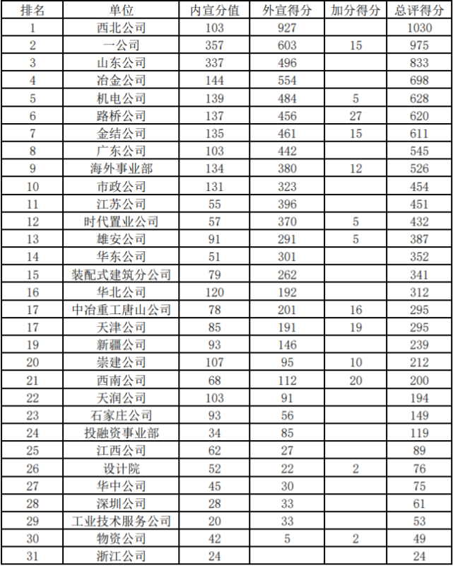 集團公司2022年一季度宣傳報道工作考核結果