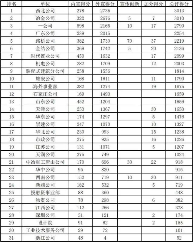集團公司各單位2022年上半年宣傳報道工作考核結(jié)果