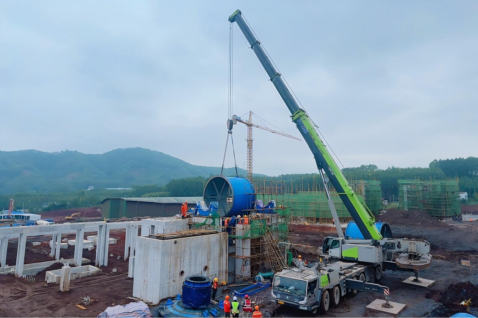 此次吊裝的球磨機是磨浮車間的核心設(shè)備,設(shè)備自重極大,首件筒體吊裝,基座調(diào)平精度是0.08毫米,對精度要求極高,哪怕是一絲一毫的偏差都可能影響未來整個磨浮系統(tǒng)的運行效率。面對挑戰(zhàn),項目團隊提前數(shù)月籌備,從路線勘察、方案優(yōu)化到協(xié)同演練,反復(fù)打磨每個環(huán)節(jié)。現(xiàn)場吊裝過程中,各崗位人員密切配合,確保這一“鋼鐵巨無霸”順利完成“絲滑”安家。