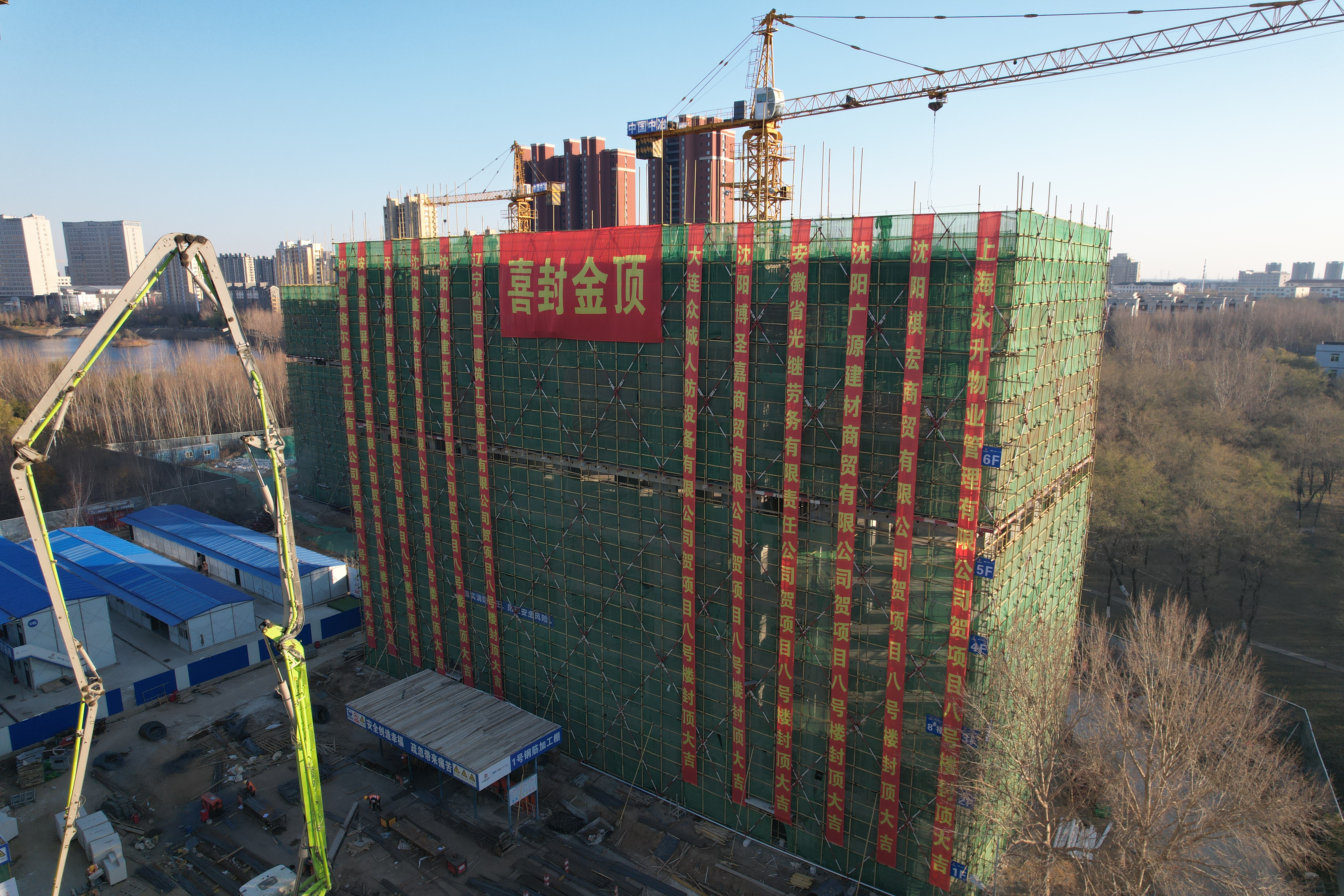 11月10日,隨著最后一方混凝土澆筑完成,一公司沈陽化工大學(xué)新建學(xué)生宿舍一期建設(shè)項(xiàng)目8號樓主體結(jié)構(gòu)封頂。